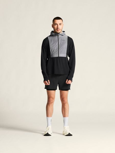 Reflektierende Laufweste mit kurzem Schnitt und Kapuze für optimale Bewegungsfreiheit und Sicherheit beim Laufen.