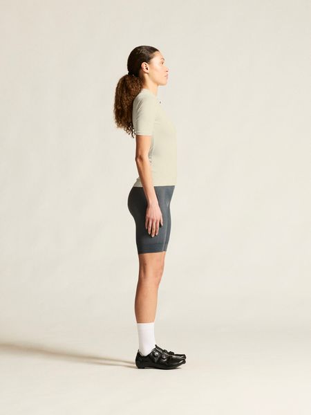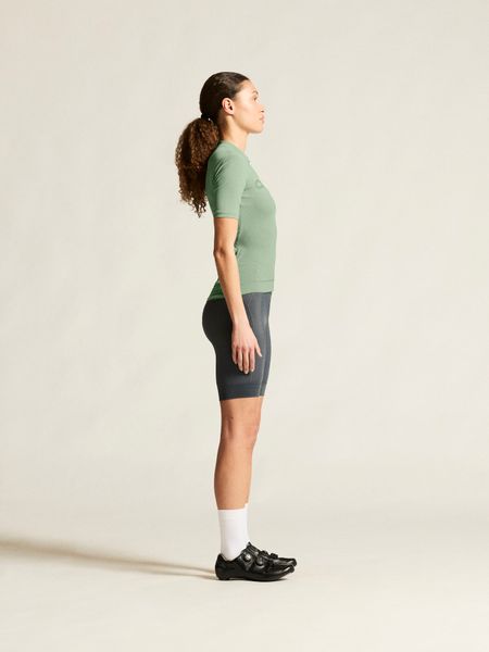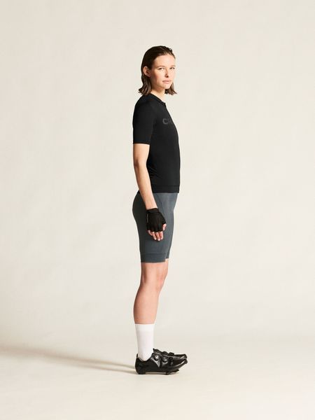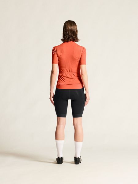 Das Trikot ist speziell für Damen konzipiert und zeichnet sich durch seine enge Passform aus, die aerodynamische Vorteile bietet. Drei praktische Rückentaschen bieten ausreichend Stauraum für wichtige Utensilien wie Energieriegel, Schlüssel oder Smartphone. Ein Kantenband am unteren Saum sorgt für einen sicheren Sitz und verhindert ein Verrutschen während der Fahrt.