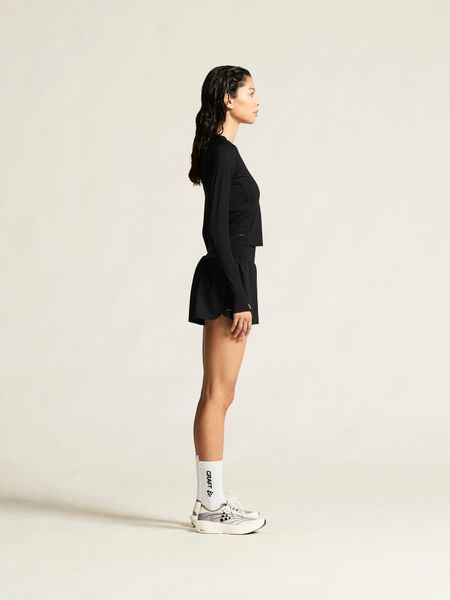 Der breite, geklebte Bund dieser Shorts gewährleistet hervorragenden Halt und eine angenehme Passform, während das weite Bein für volle Bewegungsfreiheit sorgt. Die integrierte, elastische Innenhose bietet zusätzlichen Komfort und Sicherheit beim Laufen. Praktische Details wie die drei perforierten Gesäßtaschen bieten ausreichend Platz für kleine, wichtige Utensilien, die Sie während des Trainings benötigen. Der versiegelte Saum vorne und die markanten gestreiften Details verleihen den Shorts zudem einen sportlich-eleganten Look.
