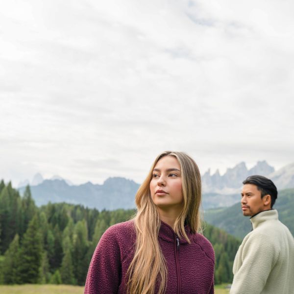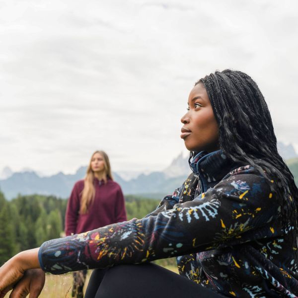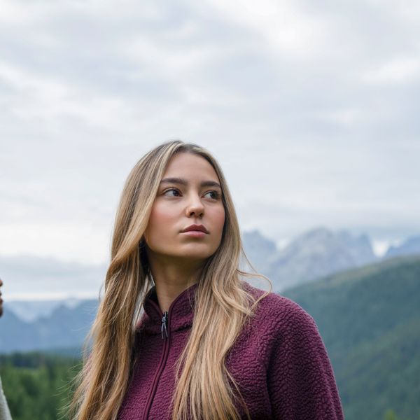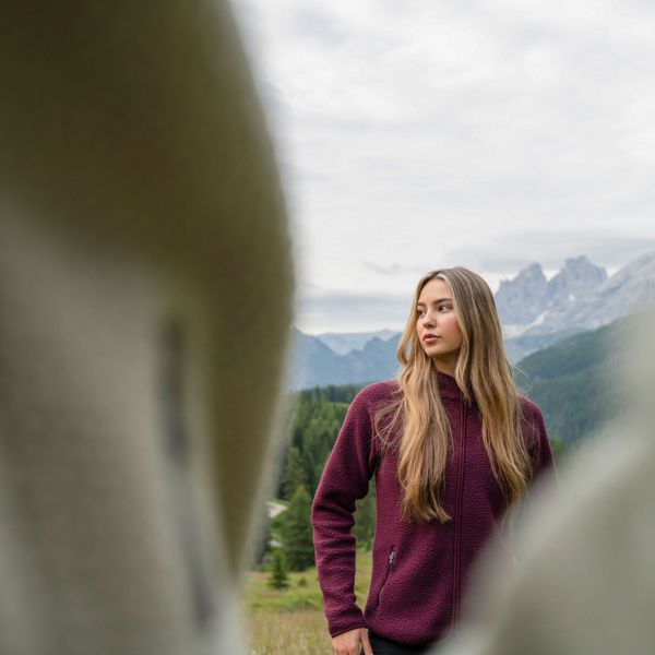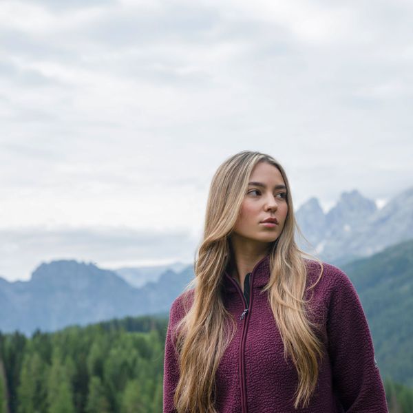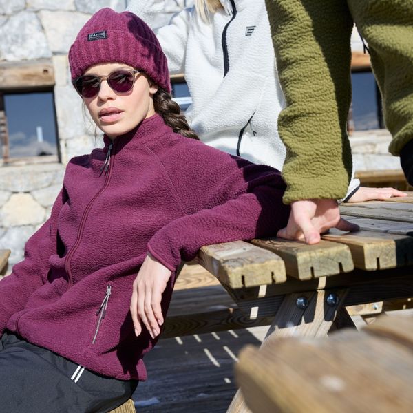 Stilvolles Fleece für Damen aus recyceltem Material, ideal für Freizeitaktivitäten und winterliche Abenteuer.