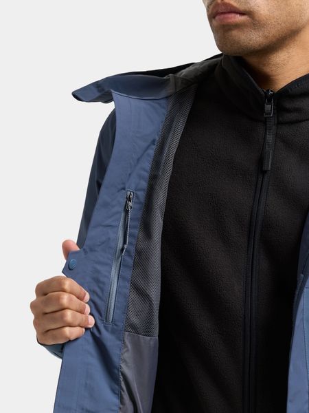Besonders praktisch ist die verstellbare Kapuze mit geformtem Schirm, die sich leicht mit einem Kordelzug anpassen lässt, um optimalen Schutz zu bieten. Der Frontreißverschluss ist mit einer Schutzklappe ausgestattet, die zusätzliche Sicherheit vor den Elementen bietet. Ein Belüftungsknopf ermöglicht zusätzliche Luftzirkulation, während wasserabweisende Reißverschlüsse in exponierten Bereichen die Funktionalität der Jacke unterstreichen.