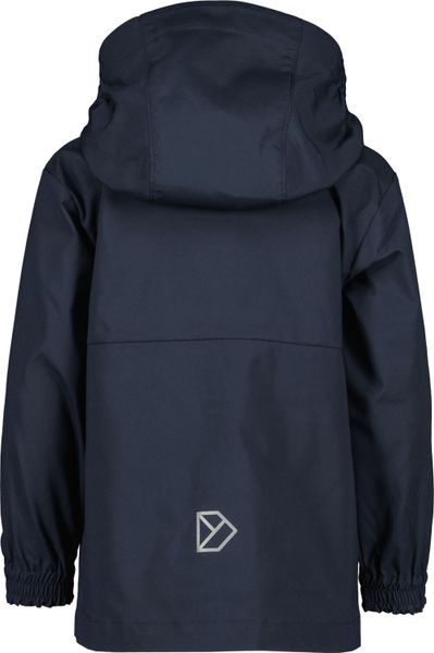 Funktionale Kinderjacke mit abnehmbarer Kapuze, winddicht, reflektierendem Logo und PFC-freier, wasserabweisender Oberfläche.