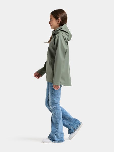 Wasserdichte Kinderjacke mit abnehmbarer Kapuze, reflektierenden Details und verstellbaren Ärmeln für optimalen Schutz.