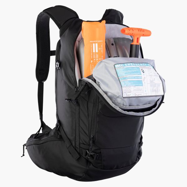 Besonders hervorzuheben ist das durchdachte Taschen-Management, das einen schnellen Zugang zum Hauptfach ermöglicht. Zahlreiche Fächer wie das Lawinenfach, das Schneebrillenfach und das Handyfach sorgen dafür, dass Sie Ihre Ausrüstung stets organisiert und griffbereit haben. Sicherheitsmerkmale wie der Notfallplan und die Signalpfeife bieten zusätzlichen Schutz in anspruchsvollen Situationen.