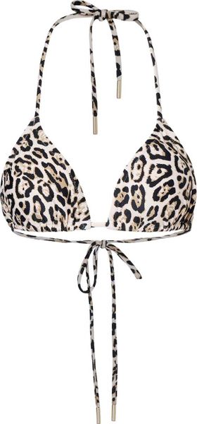 Elegantes Bikini-Top mit Jaguar-Muster, recyceltem Material und abnehmbaren Cups für individuellen Komfort.