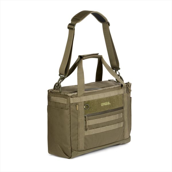 Besonders praktisch ist der leicht zu schließende magnetische Tragegriff sowie der abnehmbare, rutschfeste und gepolsterte Schultergurt, der für zusätzlichen Tragekomfort sorgt. Die seitlichen Tragegriffe mit verstärktem 2-Lagen-Gurtband ermöglichen ein einfaches Handling, während die große Seitentaschen Platz für eine Grayl® GeoPress bieten. Die durchdachte Innenaufteilung mit einer gepolsterten 13"-Laptoptasche und einer großen flachen Netztasche mit Schlüsselclip bietet optimale Organisation.