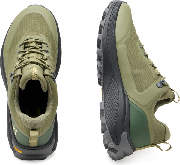 HAGLÖFS L.I.M HORIZON HIKE GTX LOW sind leichte, wasserdichte Schuhe für schnelle Abenteuer auf und abseits der Wanderwege. Sie bestehen aus Ripstop-Gewebe, das mit atmungsaktiven, PFAS-freien GORE-TEX ePE Membranen laminiert ist, und sind mit abriebfesten TPU-Folien-Overlays verstärkt – eine Kombination, die Ihre Füße trocken und komfortabel hält, ohne zu beschweren. Ausgestattet für nasses und wechselhaftes Gelände, verfügen sie über flexible, stabile und hoch gedämpfte Vibram Traction Lug Außensohlen mit verbesserter Traktion. Traktionssteigerung um bis zu 25 % (getestet von Heelux mit ihrem proprietären KIT Traction Setup) im Vergleich zu Sohlen mit einfachen Noppen, je nach Geländeart und Kombination aus Sohle und mikrostrukturierten Noppen, erhältlich in der Traction Lug Kollektion.