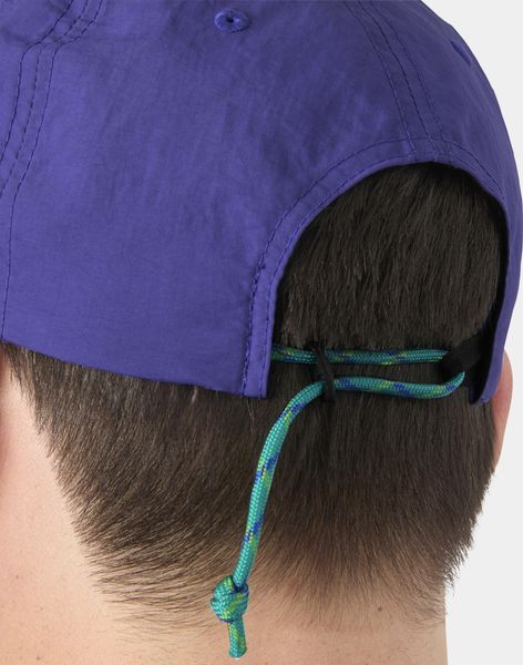 Besonders praktisch ist die elastische Schnur auf der Rückseite, die für einen sicheren Sitz sorgt, während der minimalistische Verschluss ein einfaches Anpassen ermöglicht. Ein stilvolles Detail ist die farblich abgesetzte Schnur auf der Vorderseite, die zusammen mit dem gestickten Logo einen modischen Akzent setzt. Zudem bietet die integrierte Öse am Schirm die Möglichkeit, Ihre Sonnenbrille sicher einzuhängen – ein unverzichtbares Feature für sonnige Tage.