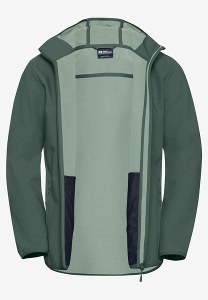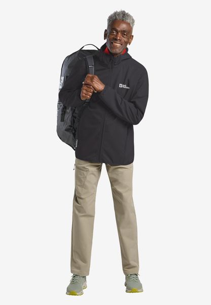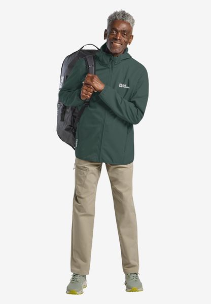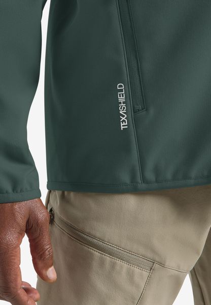 Winddichte, wasserabweisende Softshelljacke mit Kapuze für Herren, ideal für Wanderungen, nachhaltig und funktional.