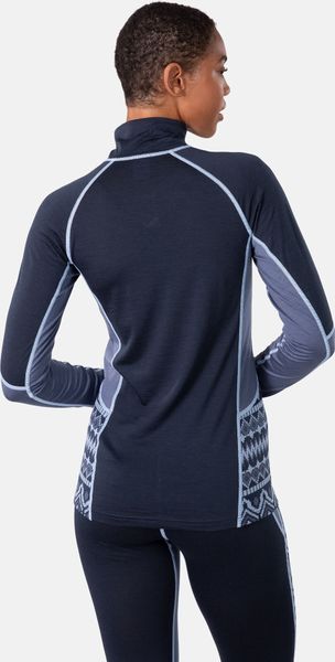 Der Kari Traa Malia Half-Zip ist ein warmer, schnelltrocknender und ultrabequemer Baselayer aus einer Merinowolle/Tencel-Mischung mit hohem Kragen und strategischem Feuchtigkeitstransport.
