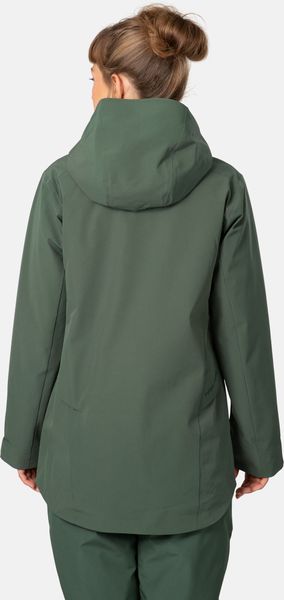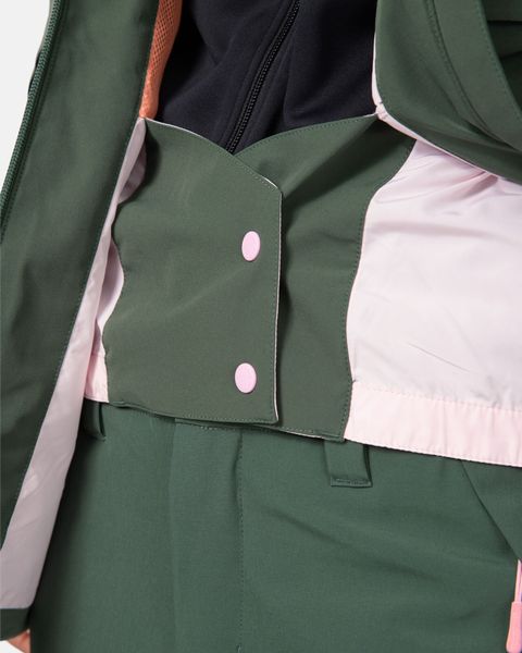 Besonders hervorzuheben sind die versiegelten Nähte an den kritischen, wetterexponierten Stellen, die zusätzliche Sicherheit vor den Elementen bieten. Die Kapuze mit Kordelzug und die verstellbaren Klettverschlüsse an den Bündchen sorgen für zusätzlichen Schutz und eine individuelle Anpassung. Der Frontreißverschluss und die praktischen Taschen, darunter eine sichere Handtasche und eine Skipasstasche am Ärmel, bieten Funktionalität und Bequemlichkeit. Ein integrierter Tiefschnee-Rock und ein verlängertes Rückenteil, das den Po bedeckt, machen die Jacke zur perfekten Begleiterin in verschneiten Gebieten.