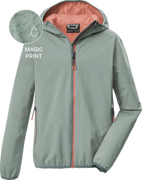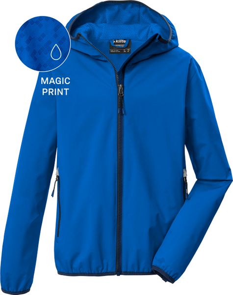 Leichte, wind- und wasserdichte Kinderjacke mit Magic Print und PFAS-freier Imprägnierung für sicheren Wetterschutz.