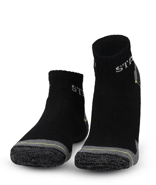 Die Socken sind in einer praktischen Quarter-Höhe designt, was sie auch an wärmeren Tagen angenehm tragbar macht. Die Polsterung an Zehen und Ferse bietet zusätzlichen Schutz und Komfort bei jeder Bewegung. Ein druckfreier Bund und die flache Kettelnaht an der Fußspitze verhindern unangenehme Druckstellen und sorgen für ein angenehmes Tragegefühl den ganzen Tag über.
