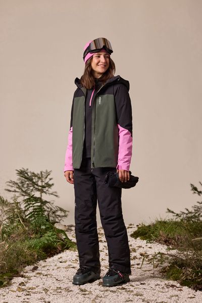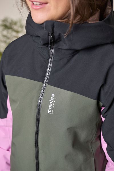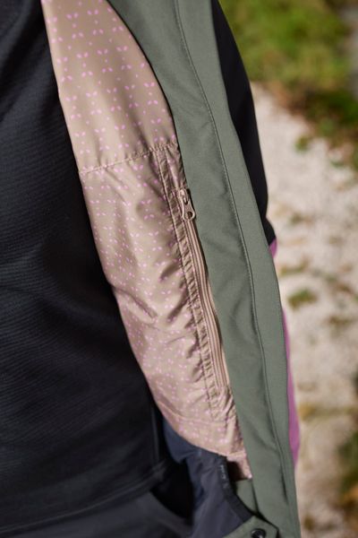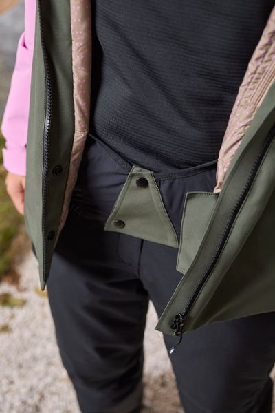 Für eine verbesserte Atmungsaktivität sind Belüftungsreißverschlüsse unter den Armen angebracht, die bei intensiven Aktivitäten für ein angenehmes Klima sorgen. Praktische Details wie zwei seitliche Reißverschlusstaschen und eine spezielle Reißverschlusstasche am linken Unterarm für den Skipass bieten ausreichend Stauraum für wichtige Utensilien. Das Innenfutter der Jacke ist mit einem attraktiven Leafdots-Muster bedruckt, das nicht nur funktional, sondern auch modisch überzeugt.