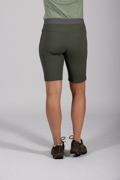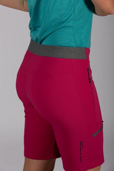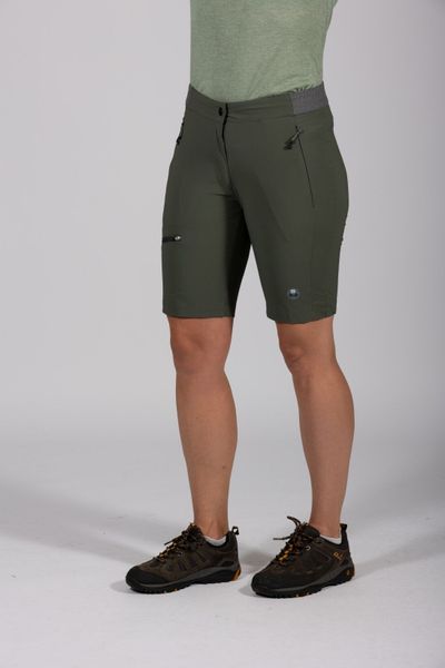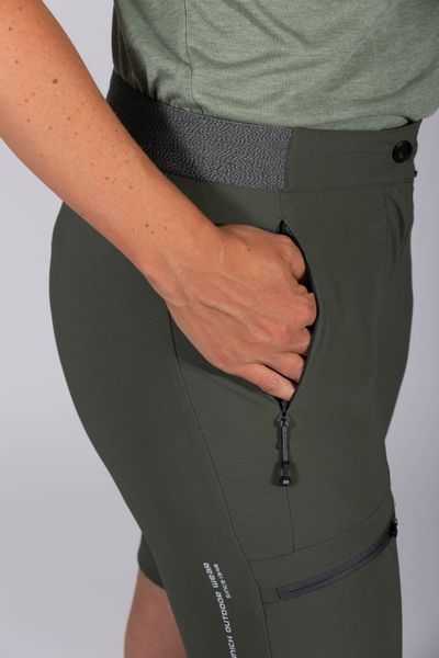 Leichte und elastische Bermuda für Damen, ideal für Outdoor-Aktivitäten, wasserabweisend und mit praktischen Taschen.