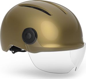 Das moderne und minimalistische Design spricht eine neue Generation von Radfahrern an, die die urbane Mobilität neu definieren. Der Helm ist mit einer verstellbaren Polycarbonat-Schutzscheibe ausgestattet, die vor Wind, Staub und Insekten schützt, und einem rückseitigen, wiederaufladbaren USB-LED-Licht, das in verschiedenen Modi leuchtet, um die Sichtbarkeit zu erhöhen. Die robuste äußere PC-Schale und das vollständig mit Polycarbonat ummantelte EPS-Innenfutter erhöhen die Haltbarkeit des Helms gegenüber Stößen und kleinen Schäden.