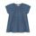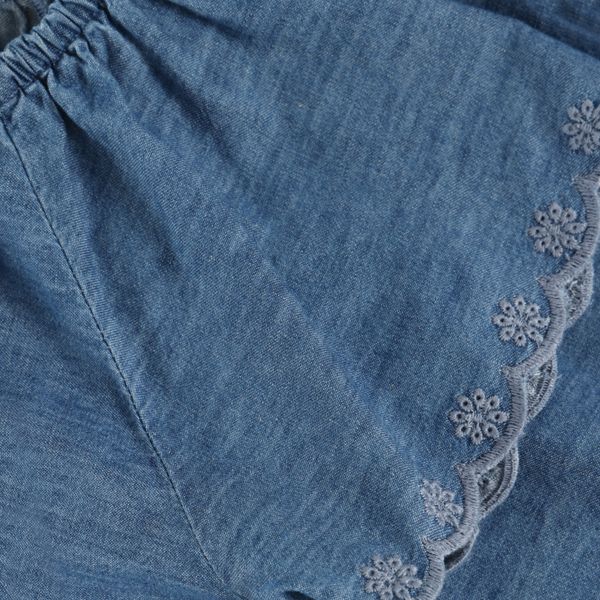 Modische Mädchenbluse im Denim-Look mit elastischem Kragen und wellenförmigen Kanten für stilvollen Komfort.