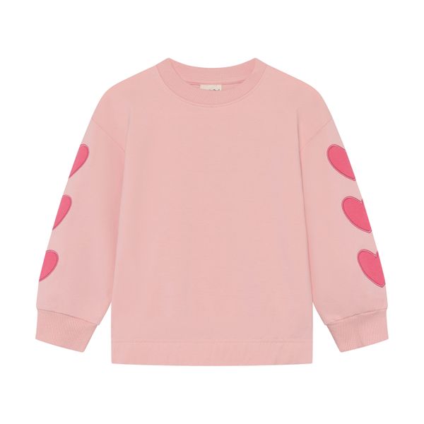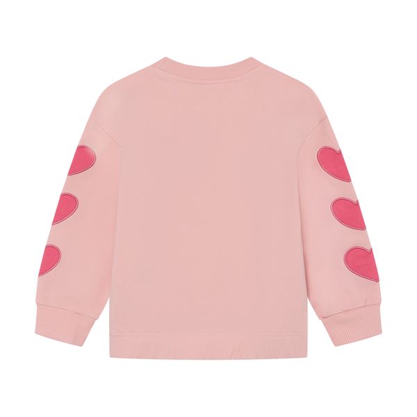 Modisches, nachhaltiges Mädchen-Sweatshirt aus elastischer Wolle mit kreativen Ärmeldrucken und GOTS-Zertifizierung.