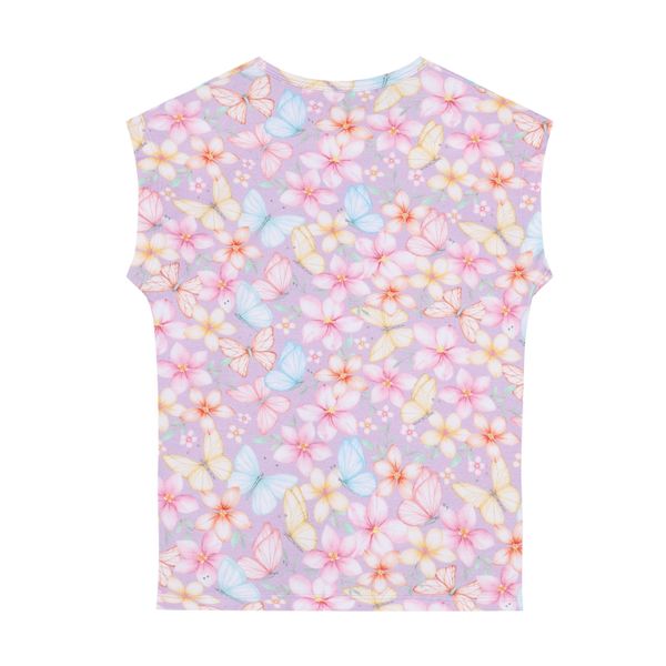 Modisches Mädchen-T-Shirt aus nachhaltiger Baumwolle mit All-over-Print und GOTS-Zertifikat für umweltbewusste Käufer.