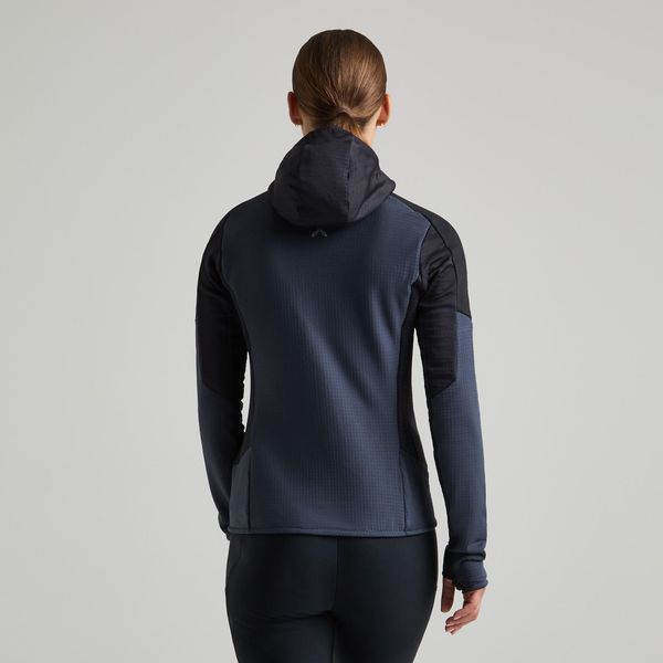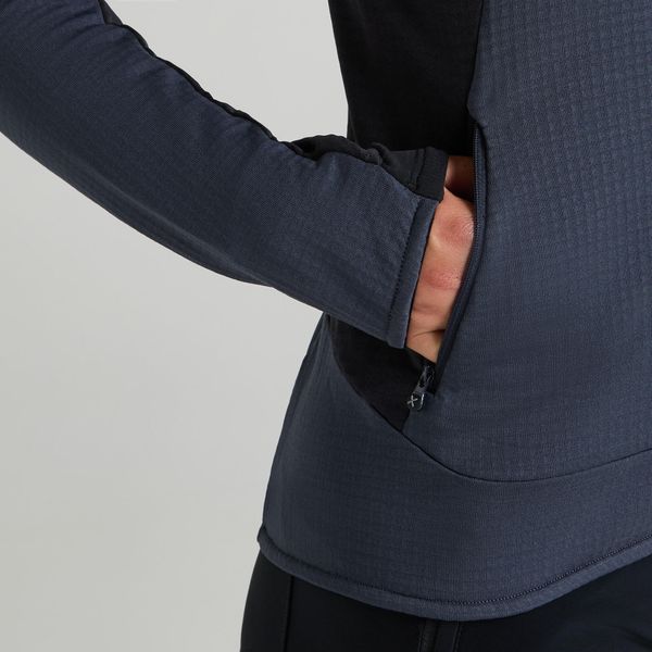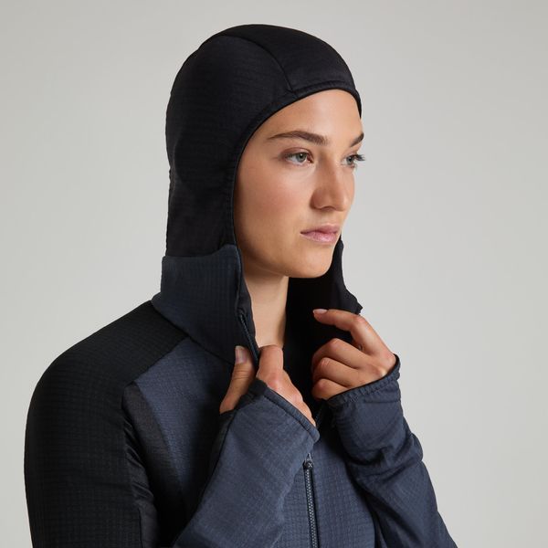 Praktische Details wie die Kapuze und der Saum mit Gummizug, die Daumenöffnungen an den Ärmelbündchen und die Reißverschlusstaschen bieten zusätzlichen Komfort und Funktionalität. Mit einem Gewicht von nur 350 g ist dieses Shirt leicht und dennoch robust genug, um den Anforderungen von Bergsteigen und anderen anspruchsvollen Sportarten gerecht zu werden.