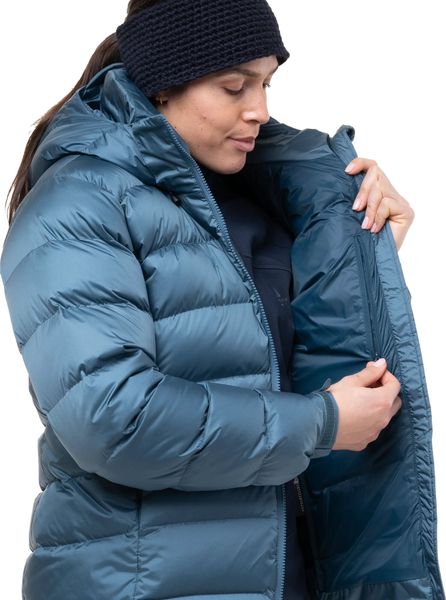 Leichte, technische Daunenjacke für Alpinistinnen mit exzellenter Wärmeisolierung und Schutz bei extremen Bedingungen.