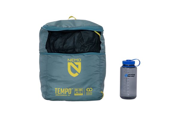 Der Tempo Schlafsack ist nicht nur funktional, sondern auch nachhaltig. Als Teil der Endless Promise®-Kollektion von NEMO wird er so produziert, dass er vollständig recycelbar ist, was NEMOs Engagement für die Umwelt unterstreicht. Das Packmaß von 33 x 29 x 33 cm und das geringe Gewicht von 1,55 kg machen ihn zudem zu einem praktischen Begleiter für jedes Abenteuer. Mit der Möglichkeit, ihn mit einem weiteren Schlafsack zu einem Doppelschlafsack zu kombinieren, bietet er zusätzliche Vielseitigkeit.