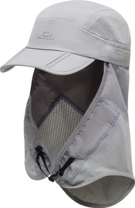 Innovative 7-Panel-Kappe mit UPF-Schutz, abnehmbarem Sonnenschutzkragen und reflektierender Wortmarke für Alltag.