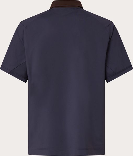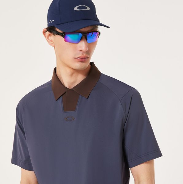 Der modische Kragen und die Knopfleiste aus farblich kontrastierendem Nylon und Spandex verleihen dem Polohemd einen besonderen Look. Die Knopfleiste ist nicht nur optisch ein Highlight, sondern auch funktional: Ein doppelter Druckknopfverschluss und eine versteckte Schlaufe zur Brillenaufbewahrung bieten praktischen Nutzen. Das Oakley Ellipse-Logo unterstreicht das sportlich-elegante Design und harmoniert perfekt mit den Farben des Kragens.