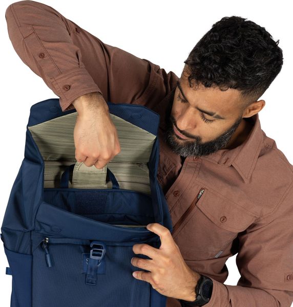• Das Laptopfach lässt sich einfach nach vorne aufklappen und bietet so Zugang zum Frontfach mit Tech-Organisation