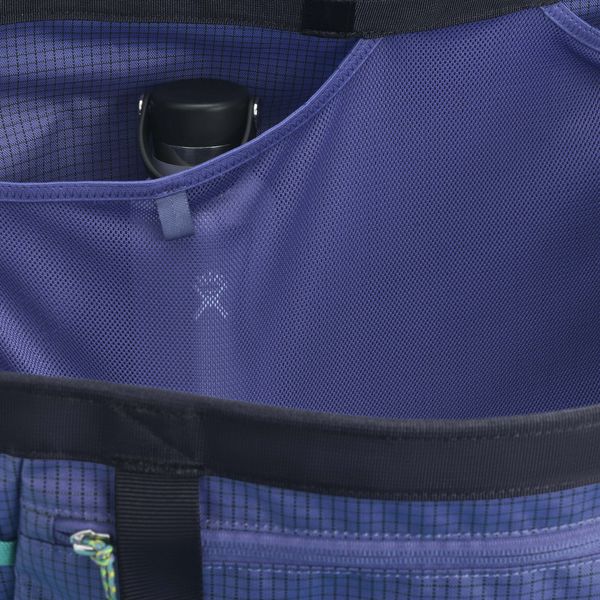 Für eine effiziente Organisation unterwegs verfügt die Tasche über ein großes Frontfach mit Reißverschluss, ein inneres Mesh-Fach sowie zwei Kompressionsriemen, die helfen, den Inhalt sicher zu verstauen. Außen angebrachte Zurrschlaufen bieten zusätzliche Befestigungsmöglichkeiten. Besonders praktisch ist die abnehmbare, gepolsterte Fußmatte, die beim Schuhewechseln als Unterlage dient oder als schützender Deckel für die Tasche verwendet werden kann.