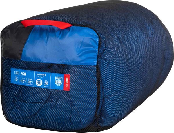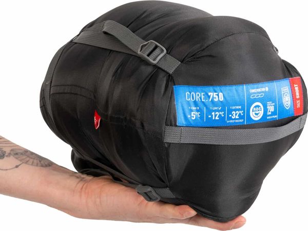 Besondere Aufmerksamkeit wurde auf die Bereiche gelegt, die durch Kondensation gefährdet sind, wie das Fußteil und der Kopfbereich. Diese sind mit einem feuchtigkeitsresistenten Gewebe verstärkt, um ein Durchnässen der Daunen zu verhindern und die Lebensdauer des Schlafsacks zu verlängern. Dies macht den Core 750 zu einem robusten Begleiter unter anspruchsvollen Outdoor-Bedingungen, ideal für Aktivitäten wie Wandern und Trekking auf langen Touren.