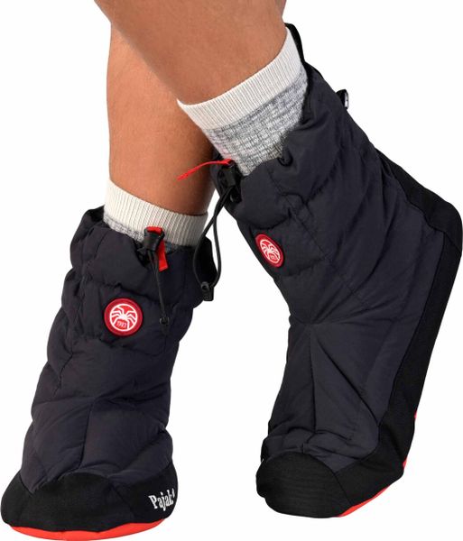 Leichte, winddichte Booties mit Daunenfüllung für optimalen Komfort und Wärme nach einem langen Outdoor-Tag.