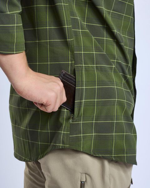 Mit praktischen Details wie einer Druckknopf-Leiste, einem eingebauten Brillenreinigungstuch, einer geräumigen Brusttasche mit Reißverschluss und einer versteckten Sicherheitstasche in der Seitennaht, bietet das Hemd genügend Stauraum für wichtige Utensilien wie Schlüssel und Karten. Die laser-geschnittenen Belüftungslöcher unter den Armen garantieren zusätzliche Frische, selbst bei intensiver Aktivität.