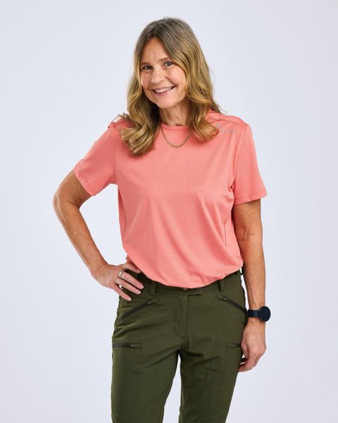 Perfektes T-Shirt für aktive Frauen, schnelltrocknend und bequem, ideal für Wandern, Klettern und Fitness.