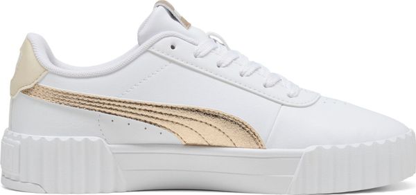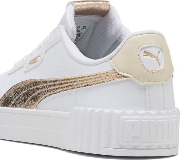 Der Carina 3.0 Metallic Whisper von Puma ist die perfekte Kombination aus zeitlosem Design und modernem Umweltbewusstsein. Dieser Sneaker bringt den klassischen Tennis-Look mit einem femininen Touch und feinen Texturen zurück auf die Straße. Mit seinem klaren Design und entspannten Charme ist er die ideale Wahl für den Alltag, sei es beim Einkaufen, beim Kaffee trinken oder einfach unterwegs. Der Schuh besticht nicht nur durch seine Optik, sondern auch durch seine umweltfreundliche Herstellung: Das Obermaterial besteht zu mindestens 30 % aus recycelten Materialien, während der untere Teil mindestens 10 % recycelte Materialien verwendet.