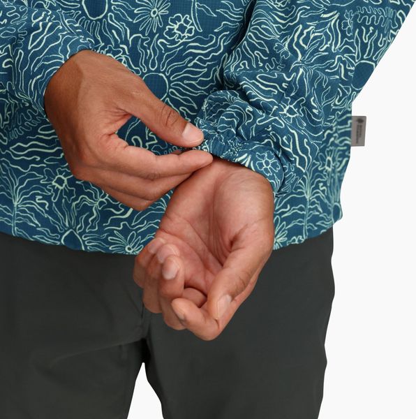 Hergestellt aus 100 % recyceltem Polyester-Ripstop, ist der Hoodie nicht nur ultraleicht und atmungsaktiv, sondern auch besonders strapazierfähig. Die Bluesign®-zertifizierten Materialien garantieren eine umweltfreundliche Produktion, die sowohl Mensch als auch Natur schont. Zusätzlich sorgen teilweise elastische Bündchen dafür, dass Insekten keine Chance haben, während sie gleichzeitig für einen hohen Tragekomfort sorgen.