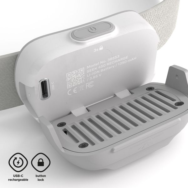 Erhältlich in den Farben Midnight, Mountain Mist, Stormy Sky und Whiteout, besteht die Stirnlampe aus recycelten Kunststoffen, was sie zu einer umweltfreundlichen Wahl macht. Mit der Seek 450 Recharge sind Sie bestens gerüstet, um die Natur in vollen Zügen zu genießen.