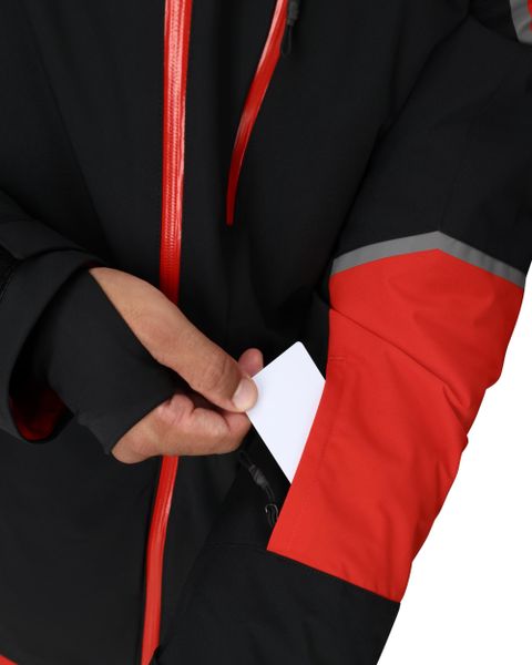 Herren-Skijacke mit 20K Wassersäule, EXO THERMO Isolation und RFID-Skipasstasche für stilvollen Schutz auf der Piste.