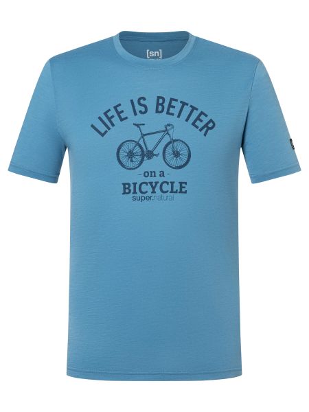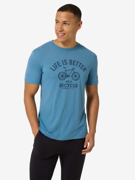 Merino T-Shirt für Herren mit Fahrrad-Print, ideal für Outdoor-Aktivitäten und Alltag, bietet UV-Schutz und hohen Komfort.
