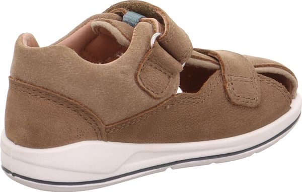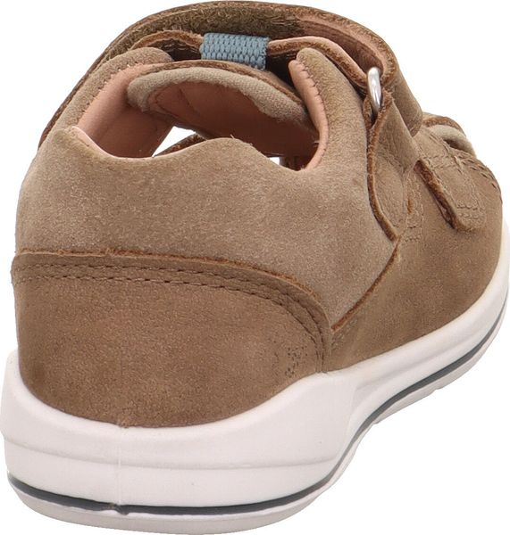 Besonders hervorzuheben ist die nachhaltige Innenausstattung, die dank chromfreier Gerbung umweltfreundlich ist und gleichzeitig ein angenehmes Fußklima gewährleistet. Die fein profilierte Sohle mit einem farbigen Streifen sorgt nicht nur für einen sicheren Halt, sondern verleiht dem Schuh auch einen modernen Touch. Der praktische Klettverschluss ermöglicht ein einfaches An- und Ausziehen und passt sich perfekt an die mittlere Weite der Sandale an.