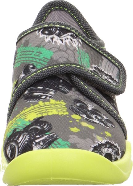 Veganer und nachhaltiger Hausschuh für Jungen mit fröhlichem Design und optimaler Dämpfung durch Bubble-Optik.