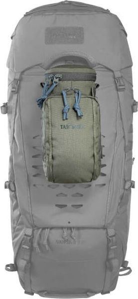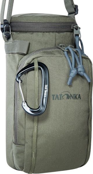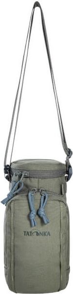 Isolierhülle mit Fronttasche und Tragegurt für Trinkflaschen, ideal für Outdoor-Abenteuer und kompatibel mit Tatonka-Rucksäcken.