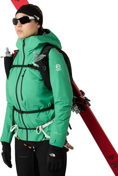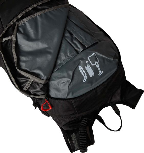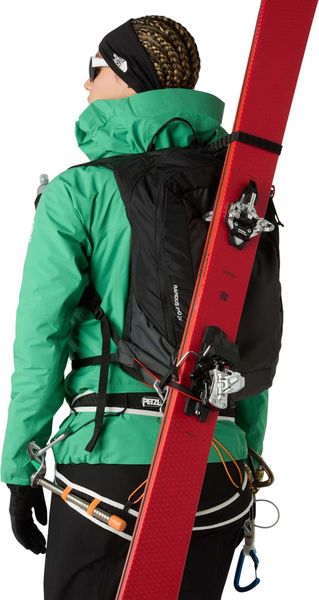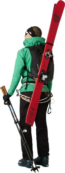 Besonders praktisch für Wintersportler ist das A-förmige Tragesystem, das in Kombination mit den diagonalen Skiträgern und dem speziellen Seil- und Eispickeltragesystem den Transport von Skiern, Seilen und Eispickeln erleichtert. Die äußere Steigeisentasche mit Reißverschluss ist so positioniert, dass sie auch während des Tragens des Rucksacks leicht zugänglich ist. Für zusätzlichen Komfort sorgen die breiten, ultraleichten Schultergurte, die jeweils eine 500-ml-Softflask aufnehmen können – zwei davon sind bereits im Lieferumfang enthalten und eine Isolierhülle verhindert das Einfrieren des Inhalts.