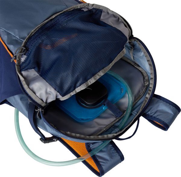 Für Hydration unterwegs ist gesorgt: Zwei strategisch platzierte Wasserflaschenfächer ermöglichen den Zugriff auf Flaschen, ohne den Rucksack abnehmen zu müssen. Zudem verfügt der Rucksack über ein internes Trinkblasenfach. Das abnehmbare Helmtragesystem ist ideal für Kletter- oder Fahrradhelme, und das Trekkingstock- und Eispickeltragesystem bietet zusätzliche Flexibilität. Seitliche Kompressionsriemen helfen dabei, den Rucksack kompakt zu halten, während reflektierende Details die Sichtbarkeit in der Dämmerung erhöhen.