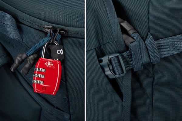 • Schutz vor Diebstahl durch innovative „LoopLocks“ und Sicherung der Reißverschlussschieber am Rucksack. Auch die Doppelreißverschlussschieber können gesichert werden (TSA-Schlösser separat erhältlich)