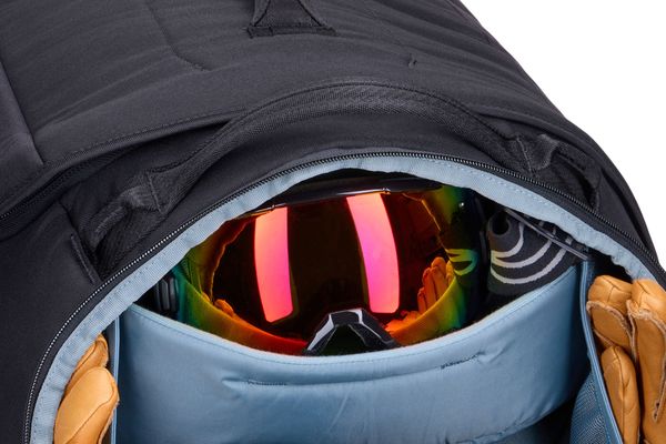 - Separates Fach für alle wichtigen Dinge, die man morgens als letztes an- und abends als erstes auszieht – Helm, Brille, Handschuhe, Schal, Skipass