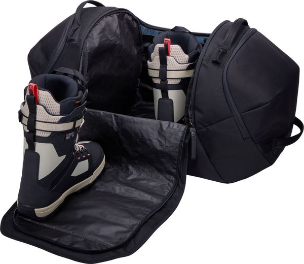 - Compartimento dedicado para botas de ski ou de snowboard, incluindo um tapete para calçar e descalçar as botas mantendo os pés secos