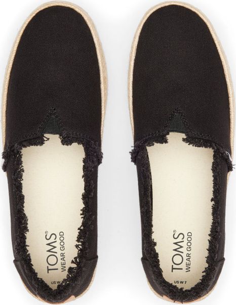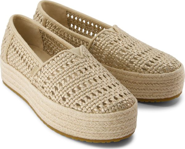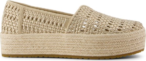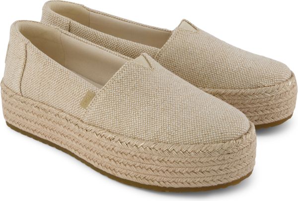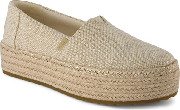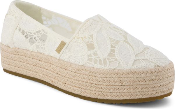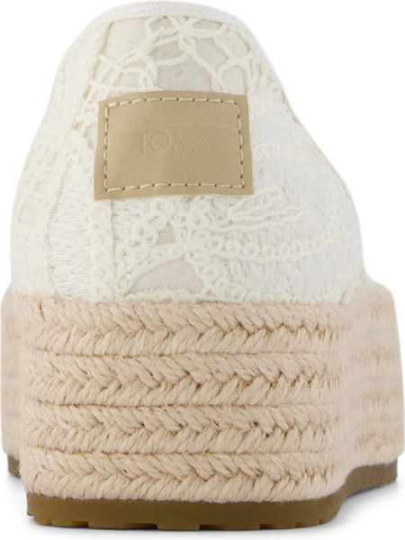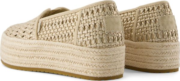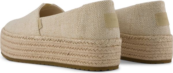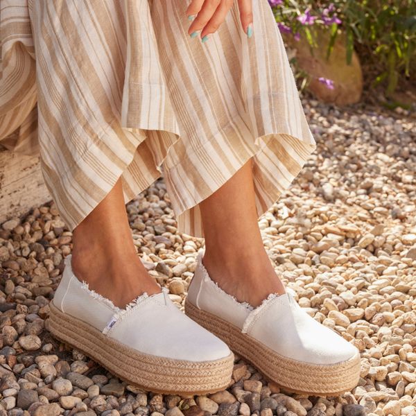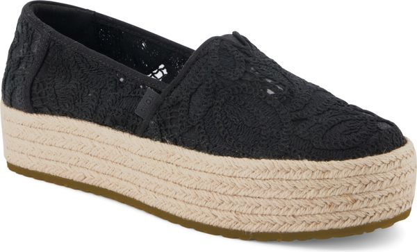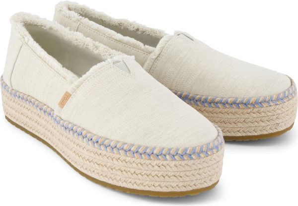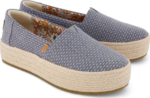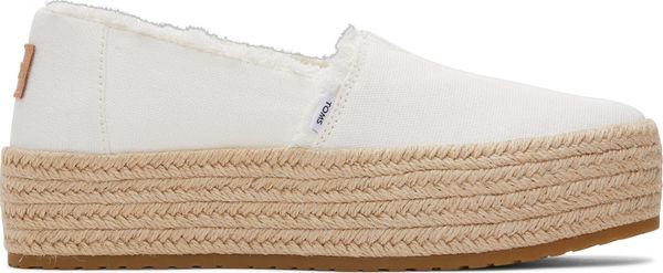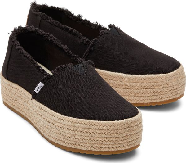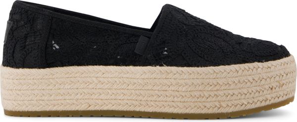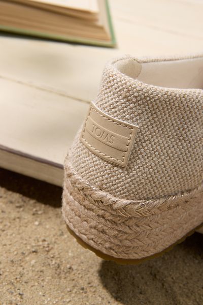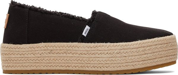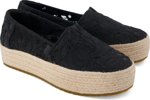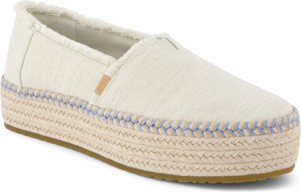 Erleben Sie stilvolle Leichtigkeit mit den Valencia Plateau-Espadrilles von Toms. Diese veganen Schuhe für Damen kombinieren ein gefüttertes und wärmendes Innenfutter mit einem modischen, textilen Obermaterial, das durch eine Seilplattform umrahmt wird. Die rutschfeste Gummisohle und die gepolsterte Ferse sorgen für zusätzlichen Komfort bei jedem Schritt. Eine neue, weichere Zwischensohle verbessert die Passform und Flexibilität, während die OrthoLite® Eco LT Hybrid™ Einlegesohlen mit 26% umweltfreundlichem Inhalt für ein angenehmes Tragegefühl sorgen.