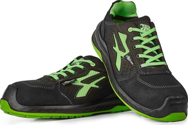 Gefertigt aus weichem Wildleder-Mikrofaser mit atmungsaktiven Einsätzen, bieten die Schuhe eine hervorragende Belüftung dank des hoch atmungsaktiven WingTex-Green-Innenfutters, das ebenfalls aus recycelten Materialien besteht. Die ultraleichte AirToe Composite Zehenkappe, die lediglich 50 g wiegt, sorgt zusammen mit dem durchtrittsicheren System Save & Flex Plus Green für optimalen Schutz, ganz ohne Metallanteile. Die Schuhe bestehen zu 59% aus recyceltem Material und bieten damit eine umweltfreundliche Alternative für den Arbeitsalltag.