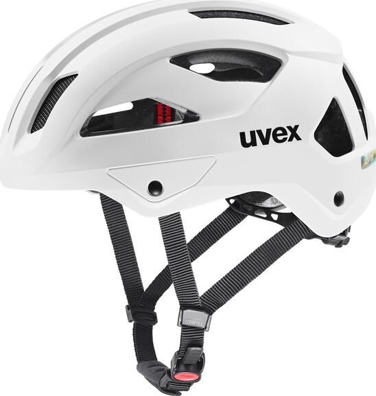 Ein besonderes Highlight ist der komfortable uvex monomatic Verschluss, der ein einhändiges Öffnen und Schließen des Helms ermöglicht. Für zusätzliche Sicherheit kann der Helm mit einem reflektierenden Schirm und einem optionalen Plug-in LED ausgestattet werden, was besonders bei Fahrten in der Dämmerung oder Dunkelheit von Vorteil ist. Mit seinen vielfältigen Einsatzmöglichkeiten und der hohen Anpassungsfähigkeit ist der Uvex Stride Helm eine hervorragende Wahl für jeden Radfahrer.